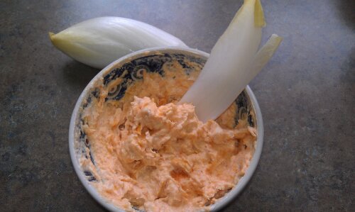 Last night – I baked an extra garnet yam with dinner and tossed it in the refrigerator. Today – I peeled it and mashed the flesh with plain yogurt and Himalayan pink salt. Garnet Yam Dip for raw veggies, my choice today, Belgian Endive. As a bonus for the pups-the yam skins – Healthy pets are happy pets ;)