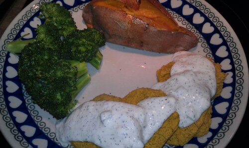With yam and steamed broccoli. A simple healthy meal!