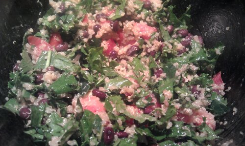 Tonight I made this tasty Kale & Quinoa Salad with Black Beans from fatfreevegan.com