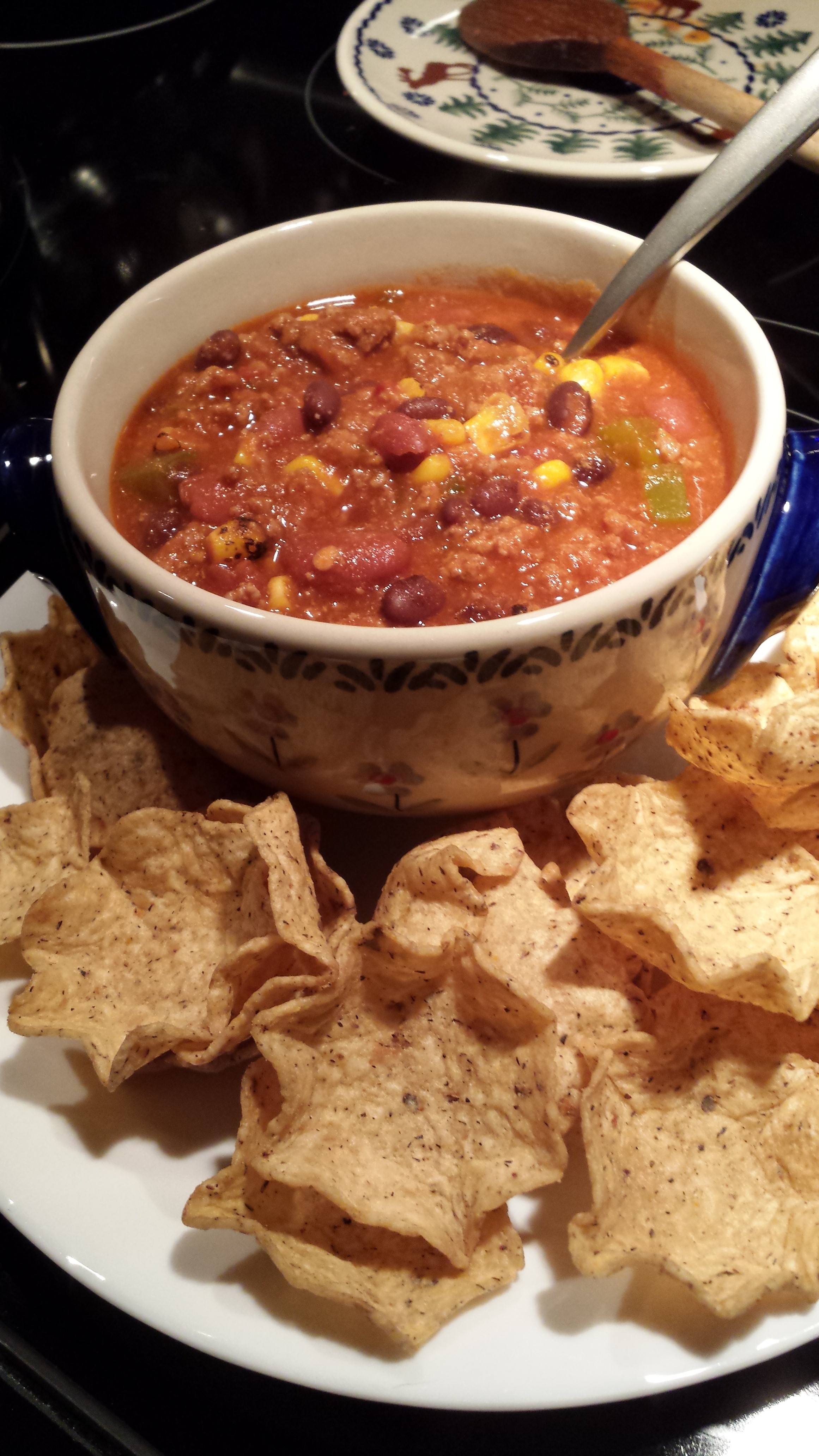 Made chili on this cold, windy day. We’ll eat some while watching our Patriots throw a football!