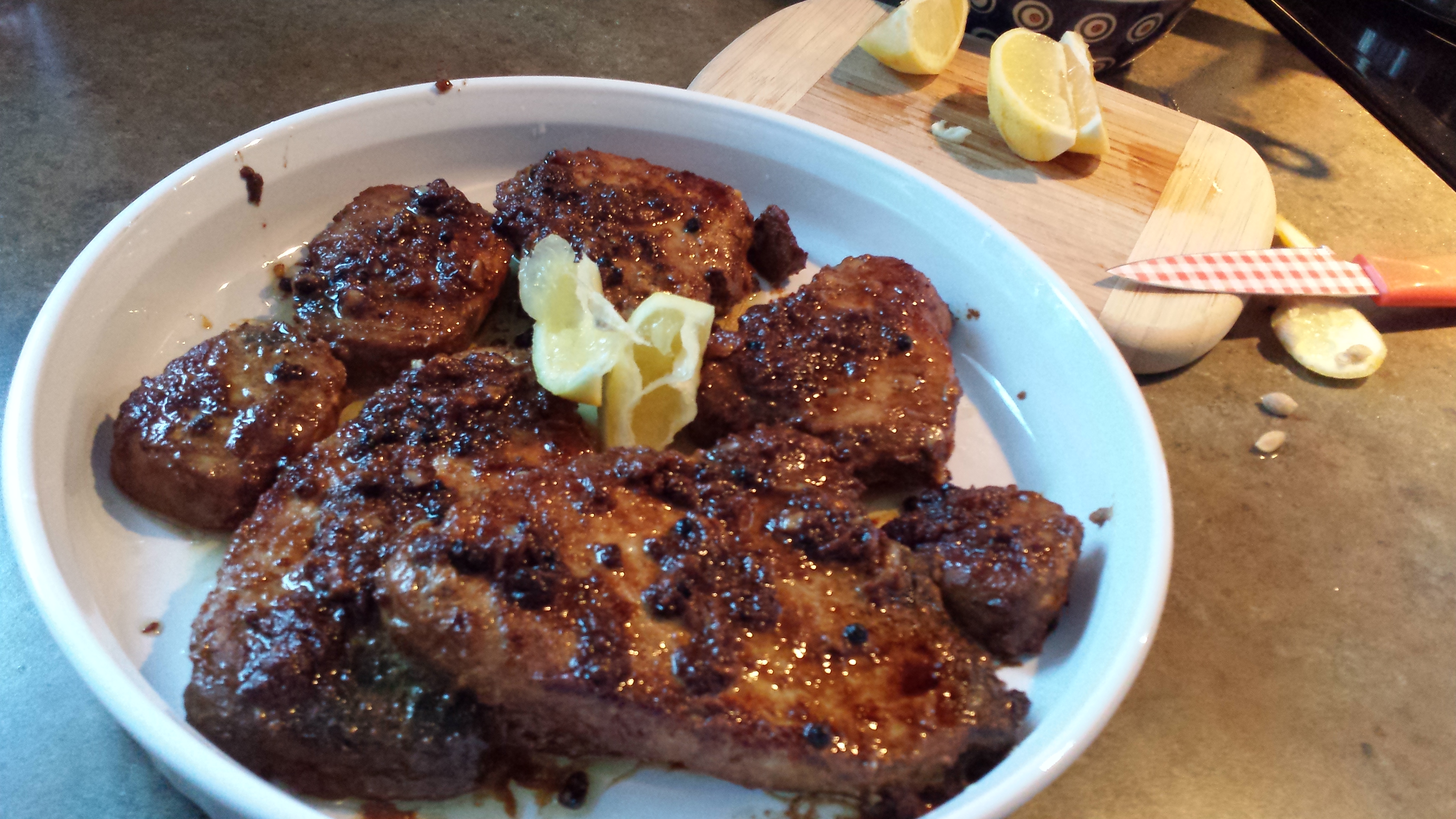 My desire to eat simply has persuaded me to spring clean the freezer by using the food that is stocked in it. While digging through it recently, I found some yellowfin tuna that I had bought a chunk of, cut into steaks and froze, so I took them out to defrost. I did a quick internet search for an easy recipe on seasoning the steaks and found a delicious one on AllRecipes.com which I will share with you.