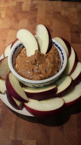 If you get a craving for something sweet during the day at work or at night but want to stick with your intentions of cutting out junk foods and sugar, this is the dip for you! It’s simple to make and as with most of my healthy dips promoted here, it’s easy to pack in your lunch and go.